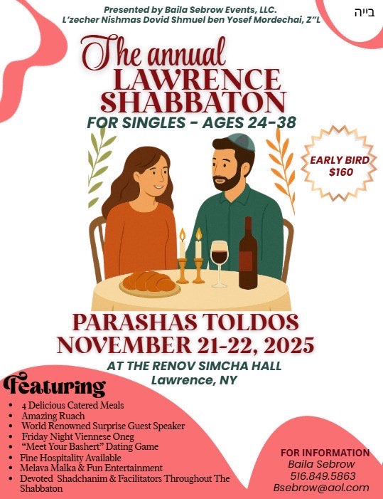 THE ANNUAL LAWRENCE SHABBATON FOR SINGLES AGES 24-38